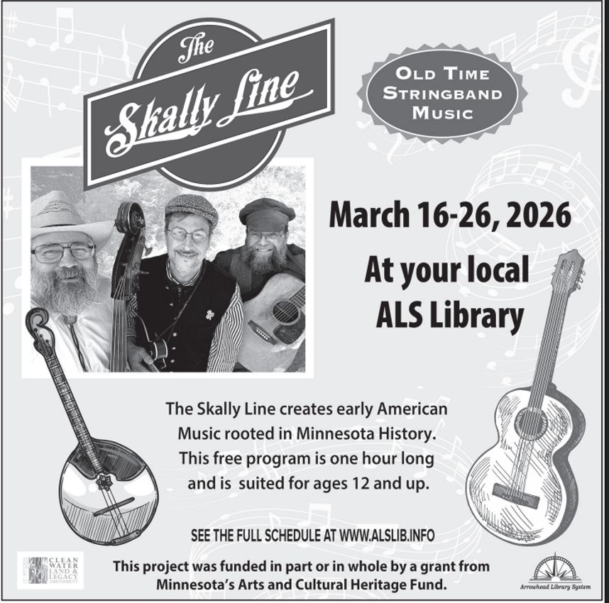 This program is one hour long and is suited for ages 12 and up. Skally Line will return to the Arrowhead region in September 2026 to perform at libraries not listed in this schedule.