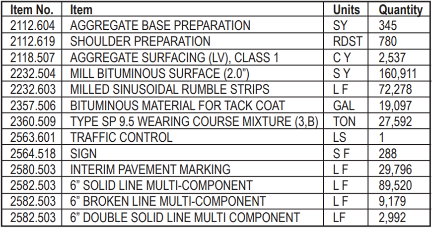 The estimated quantities of major work items are: